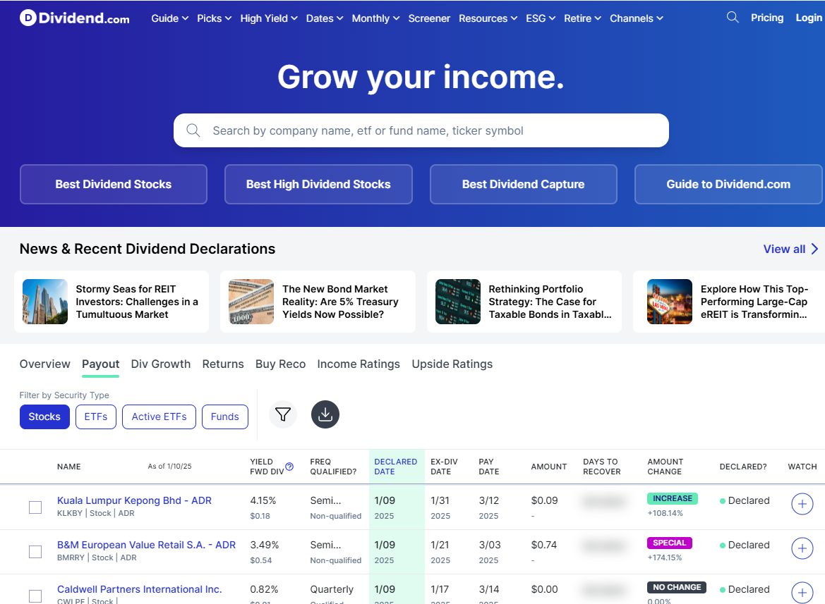 디비던드닷컴의 가장 인기 있는 기능 중 하나는 배당금 달력입니다. 이 도구를 통해 투자자들은: